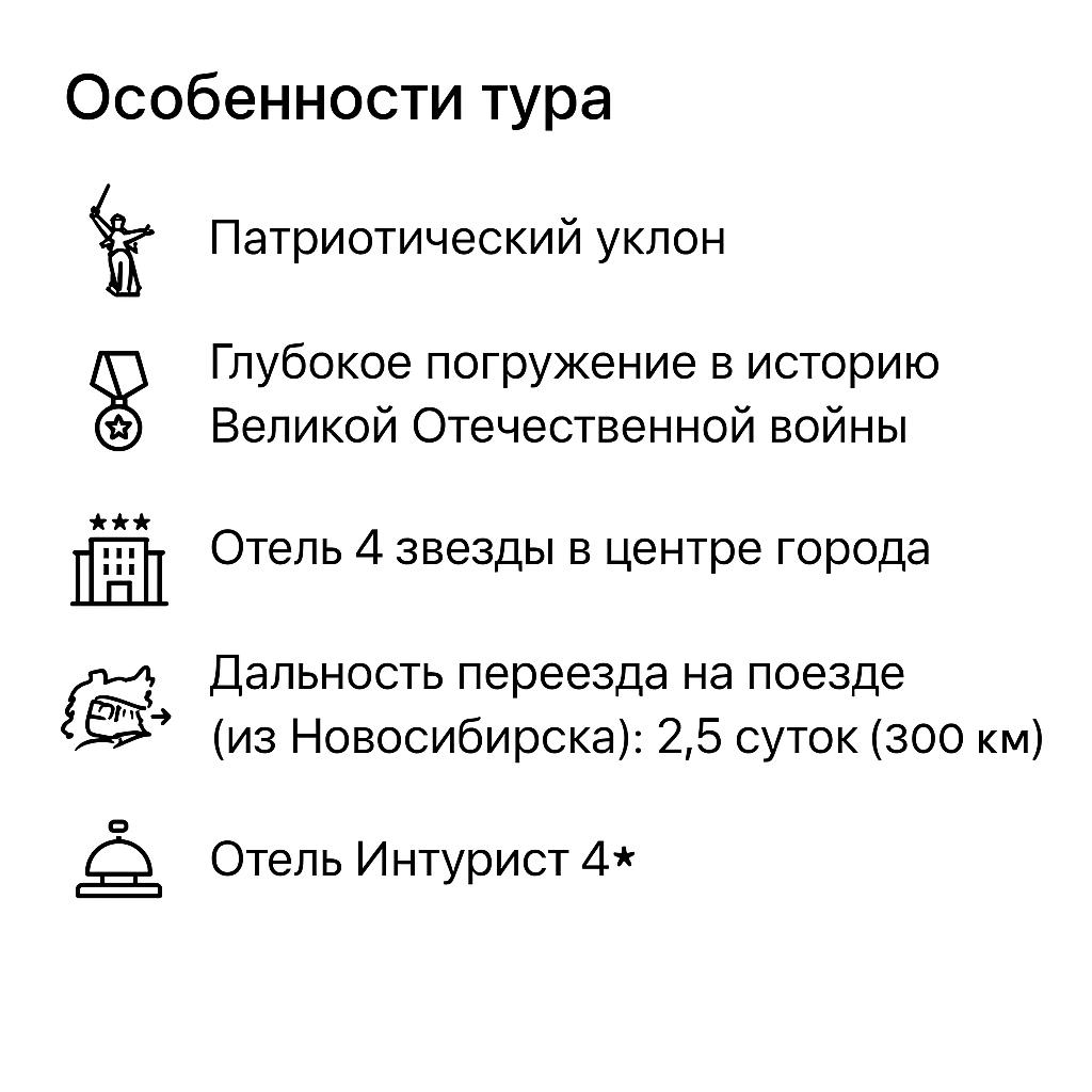 Это живое прикосновение к сердцу русской доблести. Вас ждет путь по священной земле Мамаева кургана, где каждый метр дышит героизмом, и торжественная тишина Зала воинской славы, где замирает время. Вы увидите не просто технику, а стальных свидетелей подвига, который навсегда изменил историю. Это путешествие, где память становится чувством, а гордость за Отчизну — частью души.